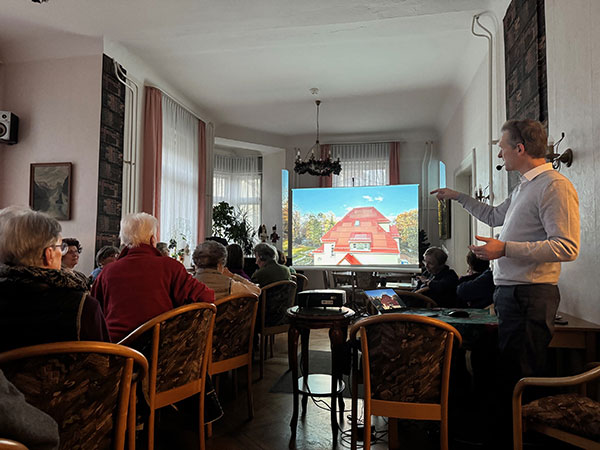 Groß war das Interesse der Seniorinnen und Senioren der Wohnanlage Bühlau, als Nachbar und Bauherr Roman Knut Seger am 25. November in einem spannenden Vortrag über die Sanierung der Villa in der Bachmannstr. 3 berichtete.