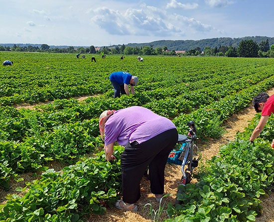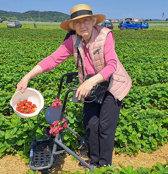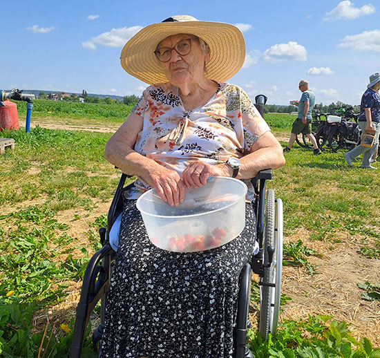Süße Auszeit: Bewohner des Wohnparks Elsa Fenske beim Erdbeerpflücken |