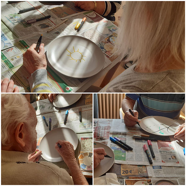 Im Anschluss wurden die Teller im Ofen gebrannt damit die Farben fixiert sind. Alle Beteiligten, egal ob alt oder jung, hatten einen fröhlichen Vormittag. Wenn man nun durch die Zimmer geht, kann man in einigen etwas Neues, Selbstgemachtes entdecken.
