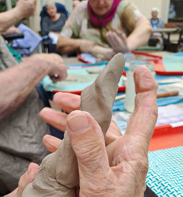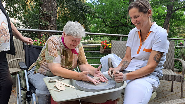 Für die Experimentierfreudigeren unter den Bewohnerinnen und Bewohnern stand eine Töpferscheibe zur Verfügung. Ohne den Anspruch, dass fertige Werkstücke entstehen, konnte hier eine spannende Erfahrung mit den Händen und dem Tonmaterial gemacht werden. Was bleibt, sind viele schöne kleine Werkstücke und die Erkenntnis, dass man nie zu alt ist, um kreativ und neugierig zu sein. |