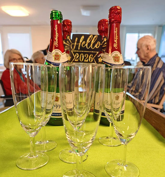 Der Himmel erstrahlte in bunten Farben und sorgte für strahlende Augen und eine festliche Atmosphäre. Um das neue Jahr gemeinsam willkommen zu heißen, lud die Einrichtungsleitung am 08.01.2026 zu einem Sektempfang in den Wohnbereichen ein. Bei musikalischer Untermalung wurde in gemütlicher Runde mit Bewohnerinnen und Bewohnern sowie Mitarbeitenden auf das Jahr 2026 angestoßen. Es war ein schöner Moment des Miteinanders und ein gelungener Start in das neue Jahr. |