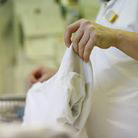Unter der Anleitung zweier Wäschereifachkräfte arbeiten ca. 18